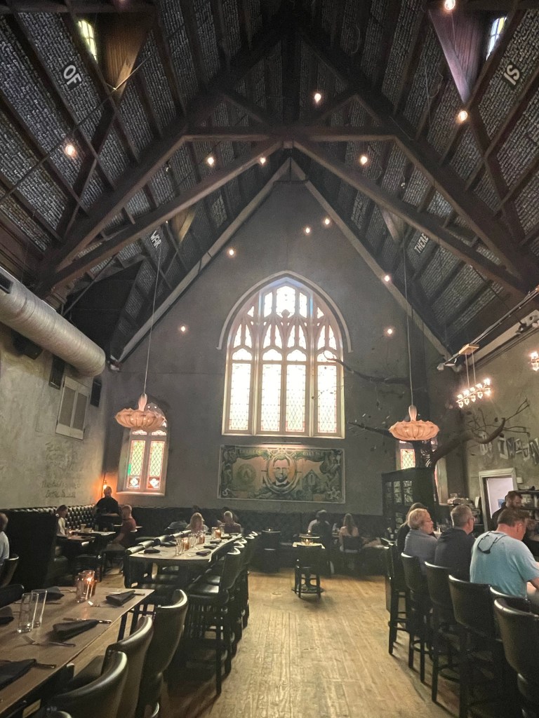 - Church & Union ($$): This sophisticated restaurant is in the heart of it all by the Charleston City Market and still boast its cathedral ceiling, stained glass windows, and hardwood floors. Even though this restaurant was once home to the Church of the Redeemer, it has a great happy hour. **Reservations are strongly encouraged.